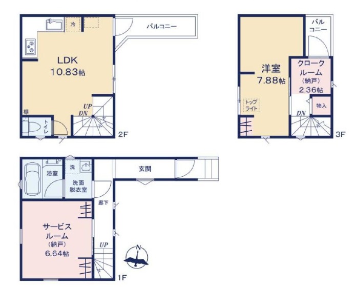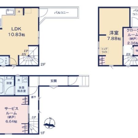 | 間取り内訳 | 1階洋室6.6畳 2階LDK10.8畳 3階洋室7.8畳 |