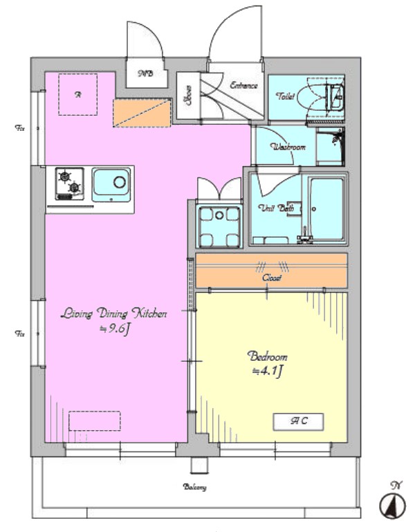 | 間取り内訳 | LDK9.6畳1室 洋室4.1畳1室 |