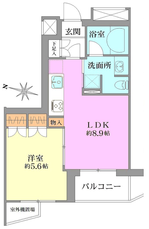 | 間取り内訳 | LDK8.9畳1室 洋室5.6畳1室 |