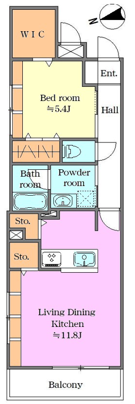 | 間取り内訳 | LDK11.8畳1室 洋室5.4畳1室 |
