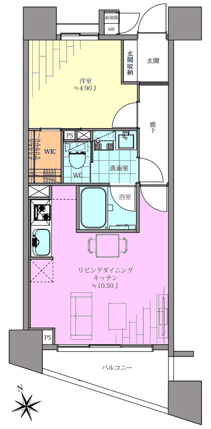 | 間取り内訳 | LDK10.5畳1室 洋室4.9畳1室 |