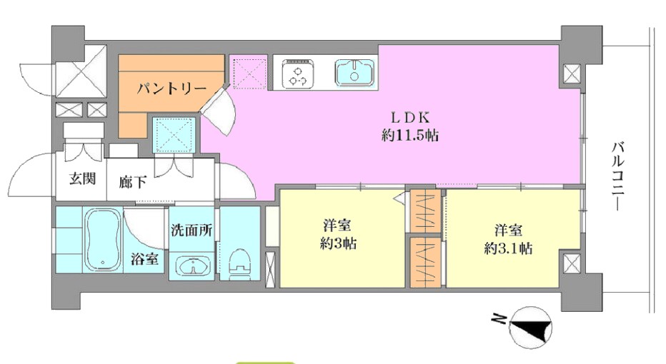 | 間取り内訳 | LDK11.5畳1室 洋室3.1畳1室 洋室3畳1室 |