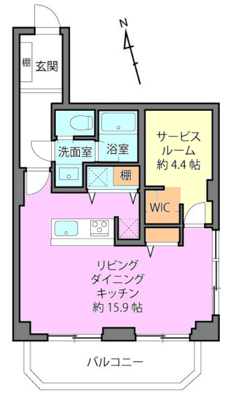 | 間取り内訳 | LDK15.9畳1室 S4.4畳1室 |