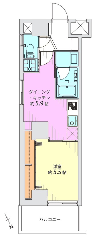 | 間取り内訳 | DK5.9畳1室 洋室5.5畳1室 |
