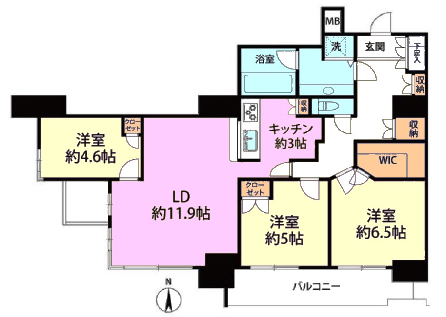 | 間取り内訳 | LDK14.9畳1室 洋室6.5畳1室 洋室5畳1室 洋室4.6畳1室 |
