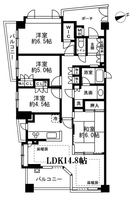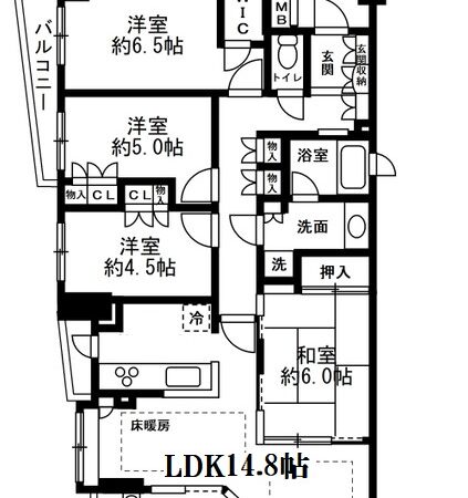 間取り内訳 LDK14.8畳 洋室6.5畳 洋室5畳 洋室4.5畳 和室6畳
