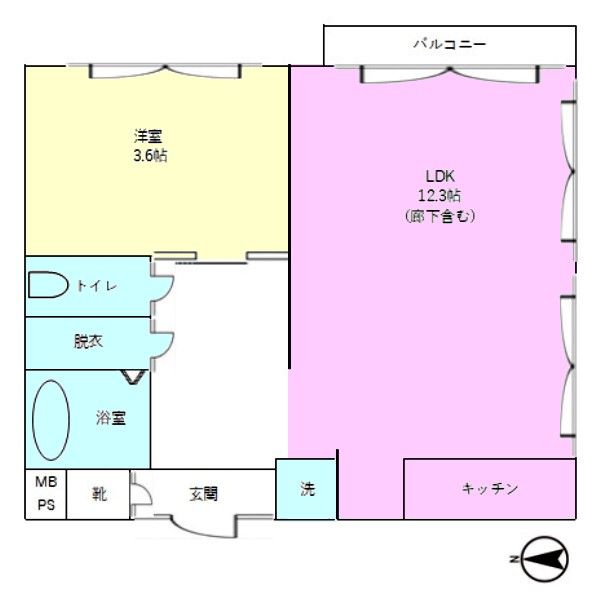| 間取り内訳 | LDK12.3畳1室 洋室3.6畳1室 |