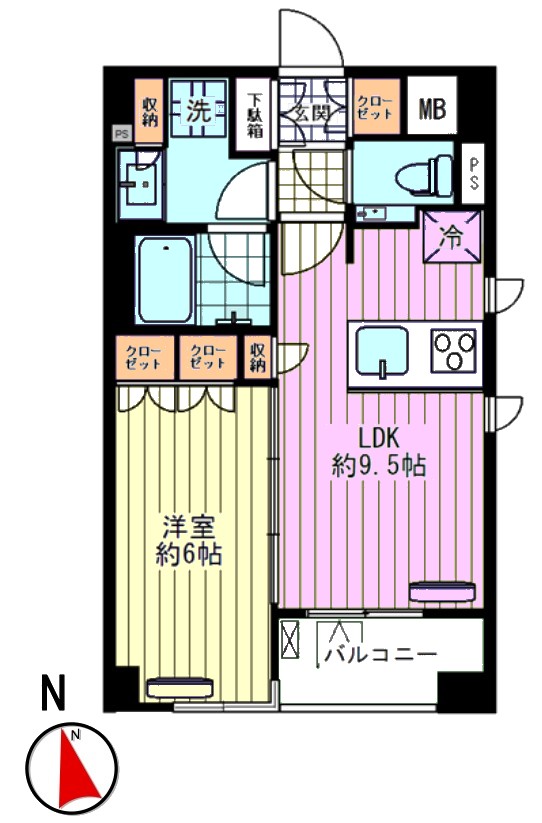 | 間取り内訳 | LDK9.5畳1室 洋室6畳1室 |