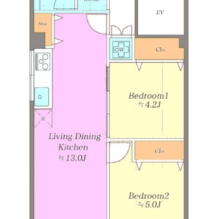 | 間取り内訳 | LDK13畳1室 洋室5畳1室 洋室4.2畳1室 |