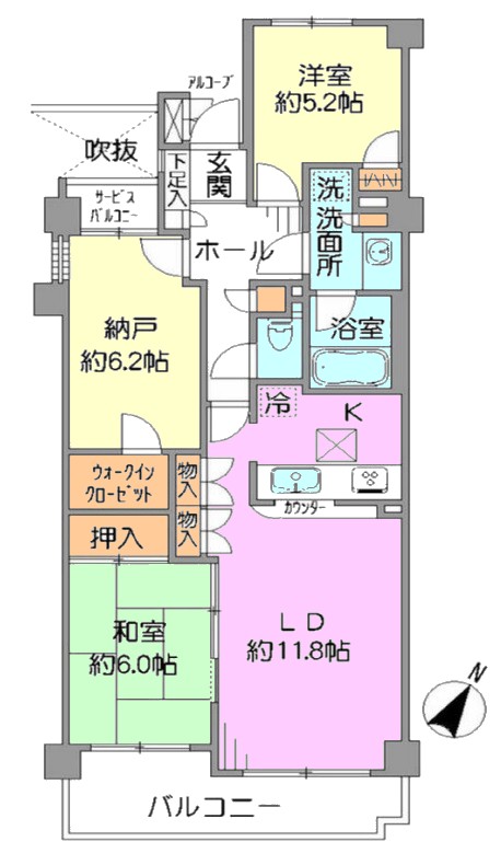 間取り内訳 LDK11.8畳1室  和室6畳1室  洋室5.2畳1室  S6.2畳1室