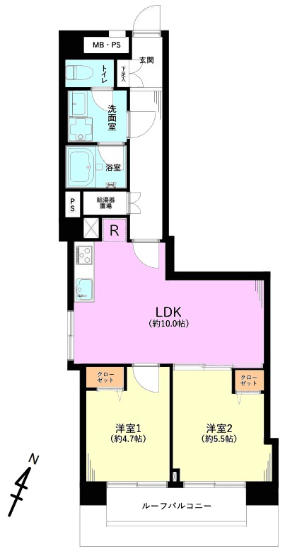 | 間取り内訳 | LDK10畳1室 洋室5.5畳1室 洋室4.7畳1室 |