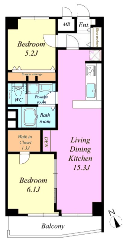 間取り内訳 LDK15.3畳1室  洋室6.1畳1室  洋室5.2畳1室