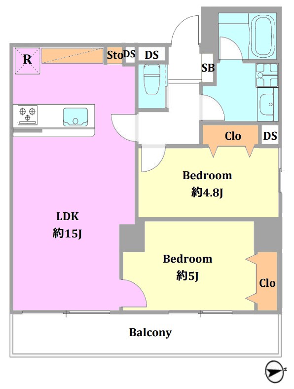 | 間取り内訳 | LDK15畳1室 洋室5畳1室 洋室4.8畳1室 |