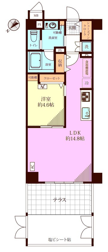 | 間取り内訳 | LDK14.8畳1室 洋室4.6畳1室 |