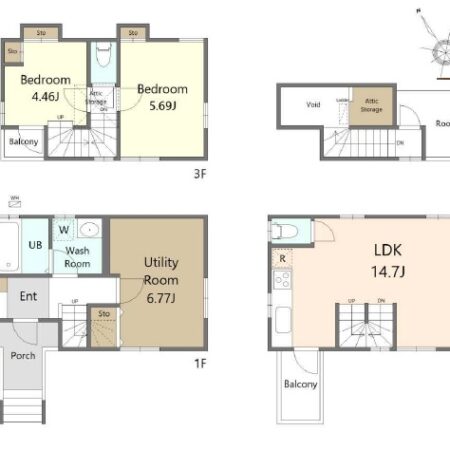 | 間取り内訳 | 1階洋室6.7畳 2階LDK14.7畳 3階洋室5.6畳 3階洋室4.4畳 |