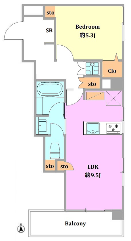 | 間取り内訳 | LDK9.5畳1室 洋室5.3畳1室 |