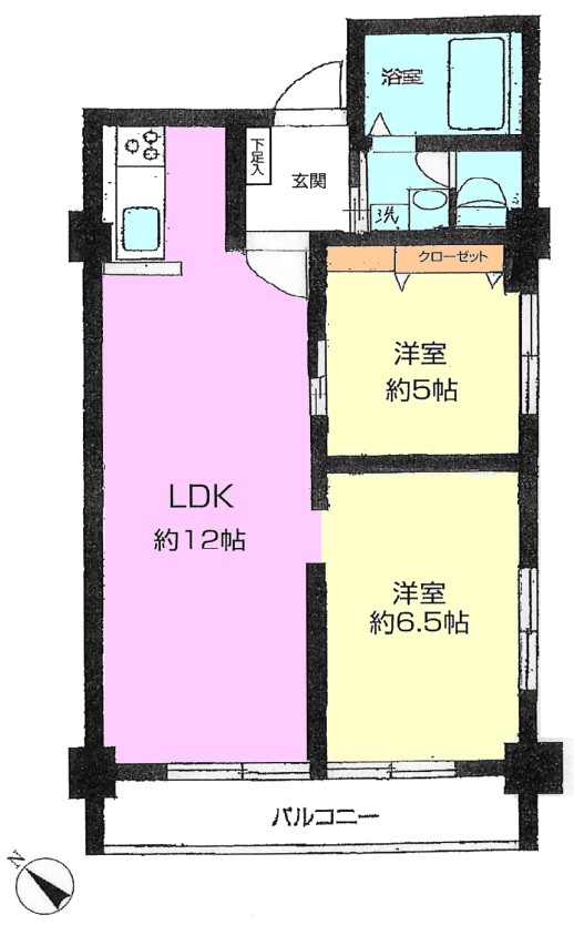 | 間取り内訳 | LDK12畳1室 洋室6.5畳1室 洋室5畳1室 |