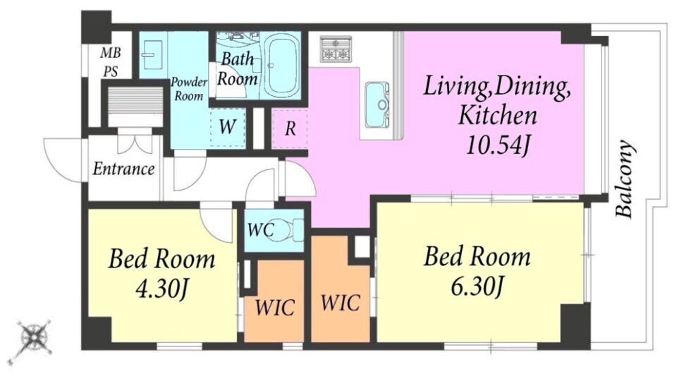 | 間取り内訳 | LDK10.54畳1室 洋室6.3畳1室 洋室4.3畳1室 |