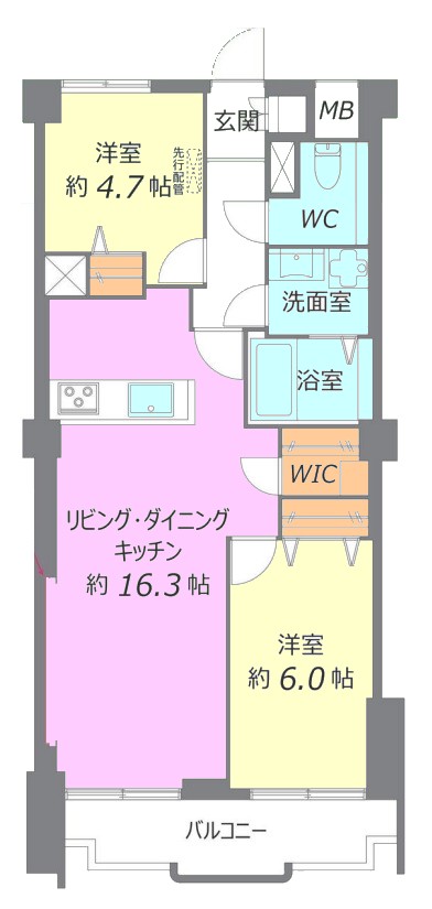 | 間取り内訳 | LDK16.3畳1室 洋室6畳1室 洋室4.7畳1室 |