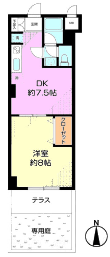 | 間取り内訳 | DK7.5畳1室 洋室8畳1室 |