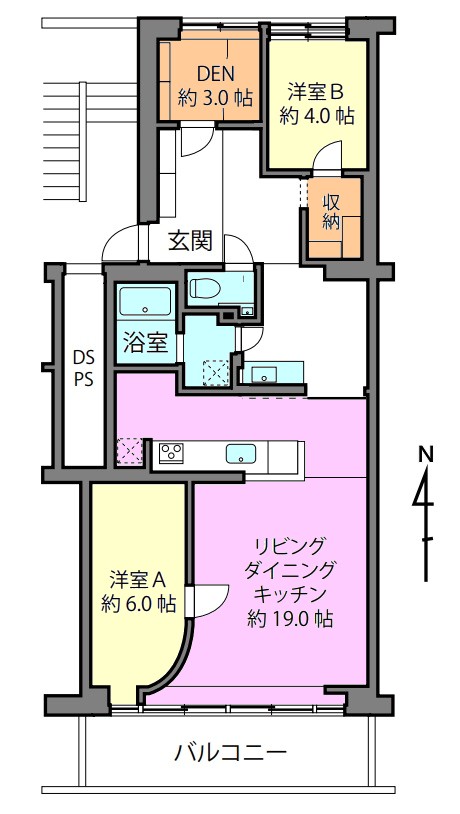 | 間取り内訳 | LDK19畳1室 洋室6畳1室 洋室4畳1室 |