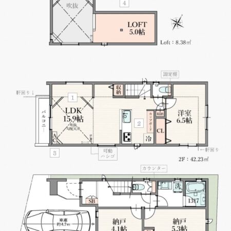 | 間取り内訳 | 1階洋室4畳 1階洋室5畳 1階洋室5.6畳 2階LDK16.4畳 |
