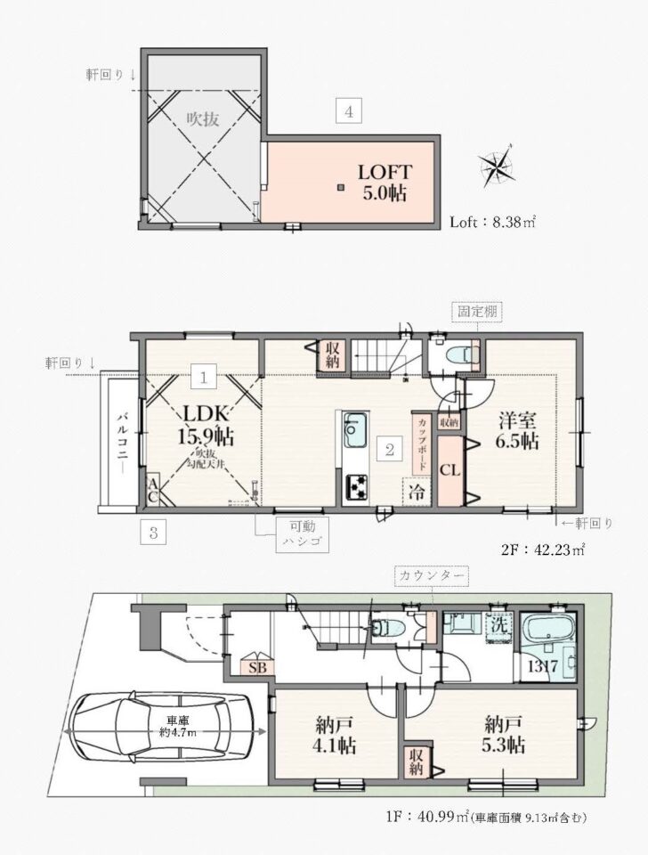 | 設備・条件 | ガスコンロ 三口コンロ システムキッチン カウンターキッチン 食器洗い乾燥機 給湯 追い焚き 洗髪洗面化粧台 独立洗面台 バス専用 浴室乾燥機 ユニットバス バス・トイレ別 温水洗浄便座 ロフト付き TVドアホン A号棟7,380万円 B号棟7,380万円 C号棟7,180万円 | ||