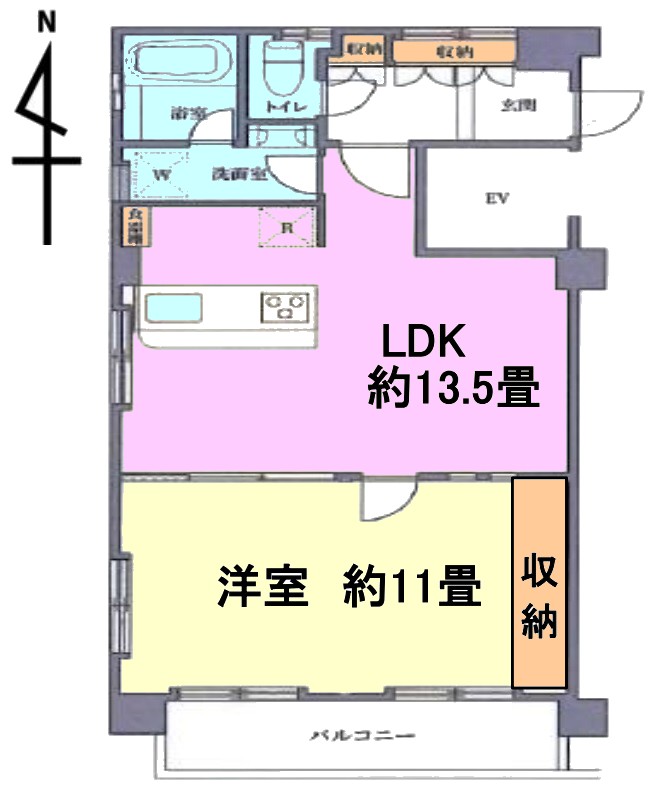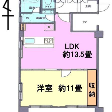 | 間取り内訳 | LDK13.5畳1室 洋室11畳1室 |