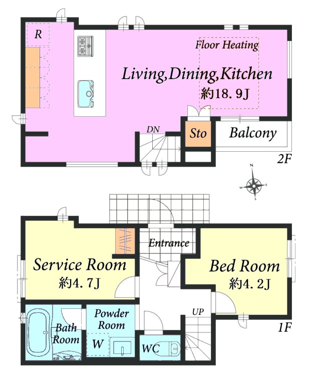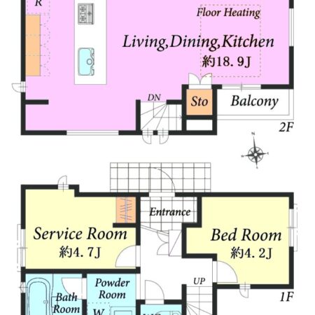 | 間取り内訳 | 2階LDK18.9畳1室 1階洋室4.2畳1室 1階S4.7畳1室 |