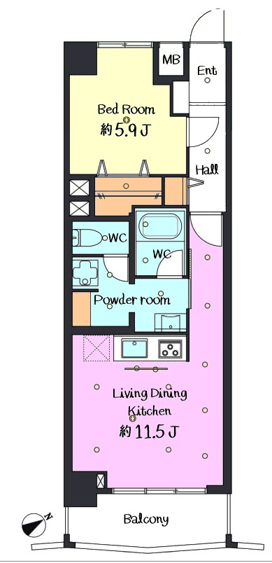 | 間取り内訳 | LDK11.5畳1室 洋室5.9畳1室 |