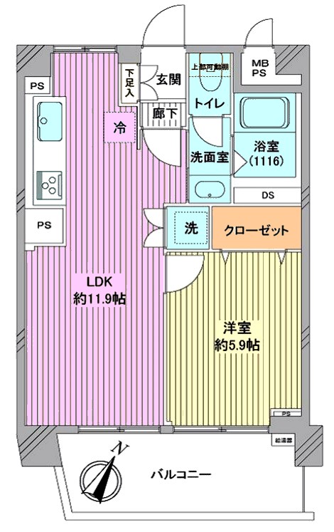 | 間取り内訳 | LDK11.9畳1室 洋室5.9畳1室 |
