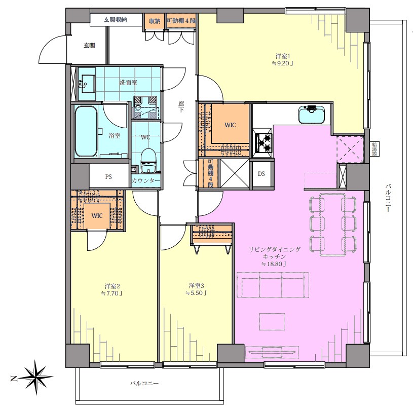| 間取り内訳 | LDK18.8畳1室 洋室9.2畳1室 洋室7.7畳1室 洋室5.5畳1室 |