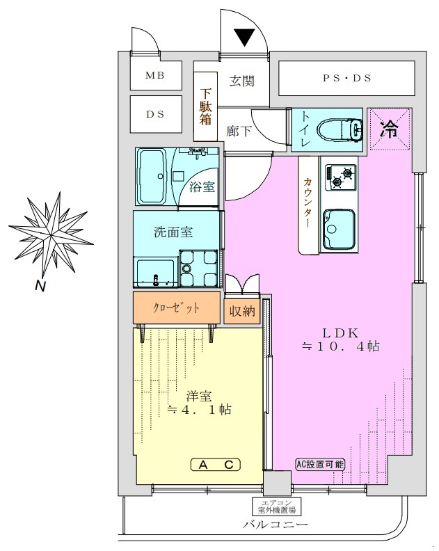 | 間取り内訳 | LDK10.4畳1室 洋室4.1畳1室 |