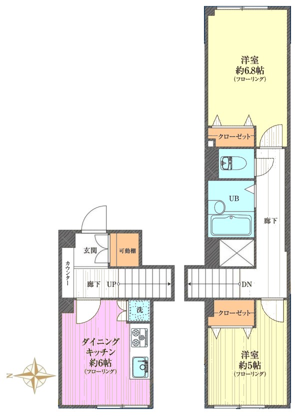 | 間取り内訳 | DK6畳1室 洋室6.8畳1室 洋室5畳1室 |