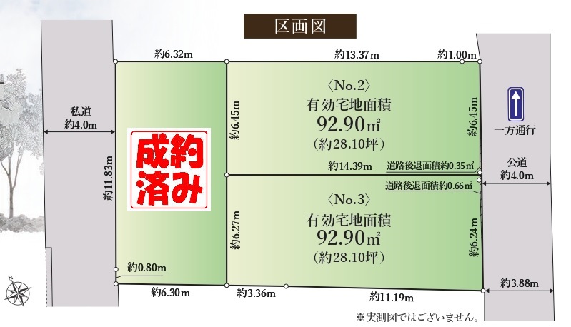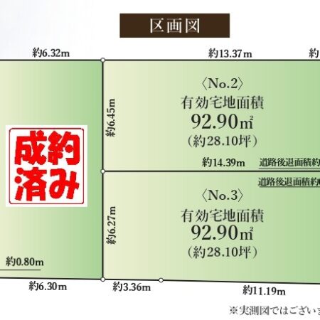| 設備・条件 | 建築条件付 都市ガス 公営水道 1区画 ご成約済み 2区画11,460万円 3区画11,550万円 | ||