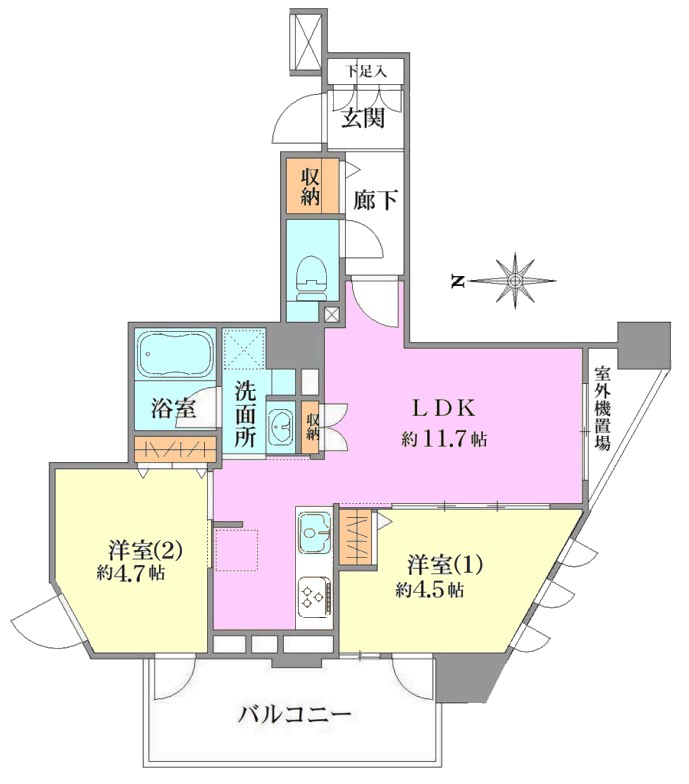 | 間取り内訳 | LDK11.7畳1室 洋室4.7畳1室 洋室4.5畳1室 |