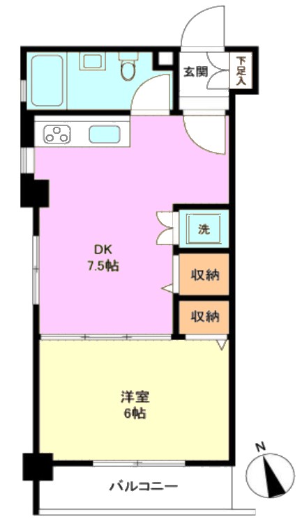 | 間取り内訳 | DK7.5畳1室 洋室6畳1室 |