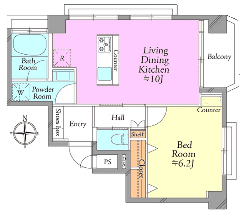 | 間取り内訳 | LDK10畳1室 洋室6.2畳1室 |