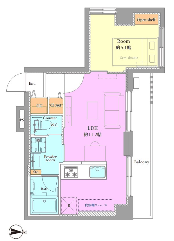 | 間取り内訳 | LDK11.2畳1室 洋室5.1畳1室 |