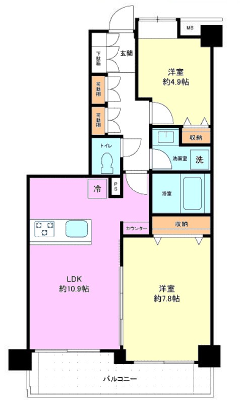 | 間取り内訳 | LDK10.9畳1室 洋室7.8畳1室 洋室4.9畳1室 |
