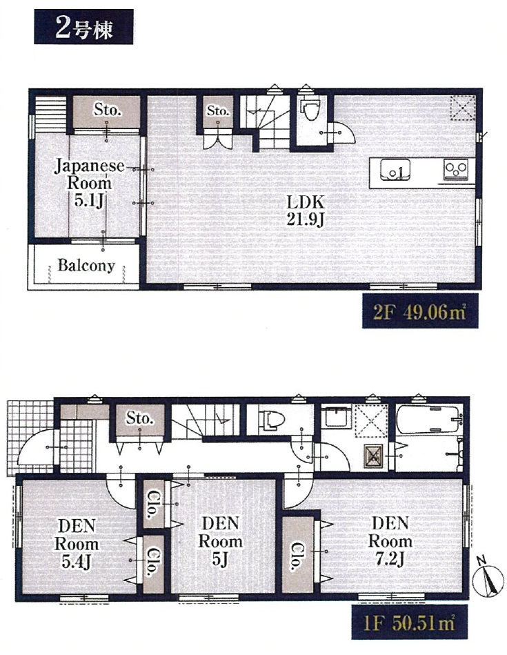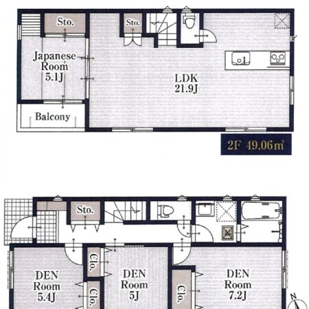 | 間取り内訳 | 1階洋室5.4畳 1階洋室5畳 1階洋室7.2畳 2階LDK21.9畳 2階和室5.1畳 |