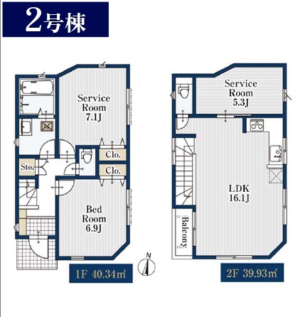 間取り内訳 1階洋室6.9畳 1階洋室7.1畳 2階LDK16.1畳 2階洋室5.3畳